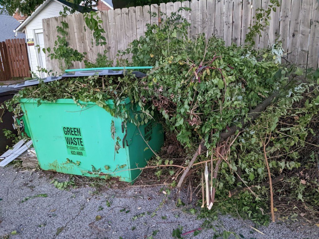 Many people suggest “tapering” the week of to a few weeks before a race, where you run fewer miles to save energy for the race. This is easier said than done, especially with such comfortable weather. The Saturday before the race, I decided to do some yard work I was very behind on. It had been about 4 weeks since I had cut the grass and the blade on the gas-powered mower was bent so I couldn’t use it. The fence line and area between the fence and alley were extremely overgrown with weeds and small bushes. There were also dead flowers and dead branches to remove. I used a trimmer to cut as much as I could before the battery died, and then sawed off the branches. A few hours later I had moved several piles of brush, overflowing the yard waste bin. I pushed the lawn mower 2 miles away to the repair shop – I just couldn’t change the blade myself. Finally, I did a 3 mile shake out run at a slower 8:09/mile pace, stopping at the Whole Foods for some groceries and pre-race fuel (i.e. bread for peanut butter and jelly). I was horrified at their prices for bread (the cheapest I found was over $5) so I got cheaper pita bread instead. (I already took packets of peanut butter and jelly home from work for free with my lunch).